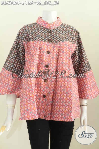 Batik Blus Dengan Kombinasi Warna Keren, Baju Batik Motif Elegan Proses Printing harga Murmer Bahan adem Model Kerah Shanghai Nagita Asli Buatan Solo [BLS6006P-L]
