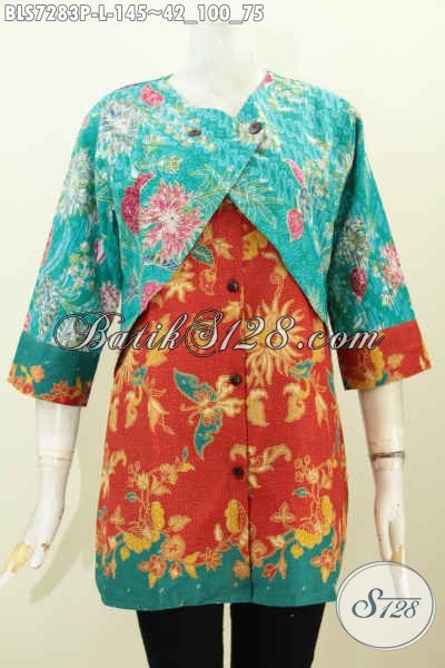 Batik Blus Desain Kombinasi Rompi Sambung, Busana Batik Istimewa Proses Printing Motif Bunga, Menunjang Penampilan Makin Sempurna [BLS7283P-L]
