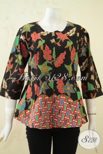 Batik Blus Dua Motif Lengan Tiga Perempat, Baju Batik Tanpa Krah Desain Berkelas Wanita Makin Cantik Dan Stylist [BLS3323P-M]