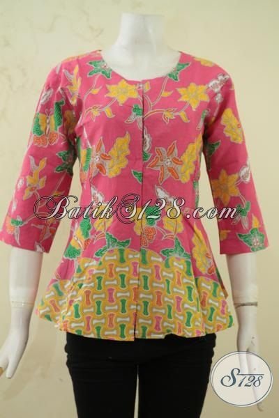 Batik Blus Dua Motif Perpaduan Warna Pink Dan Kuning Yang Keren Dan Feminim, BajuBatik Printing Buatan Solo Lebih Halus Dan Luar Biasa [BLS3336P-S]