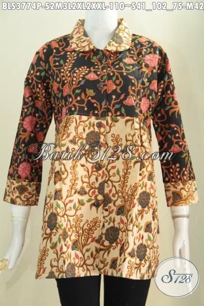 Batik Blus Dua Warna Dengan Model Terbaru Kerah Bulet, Busana Batik Modern Kwalitas Istimewa Motif Terbaru Cewek Tampil Keren Dan Modis [BLS3774P-S]