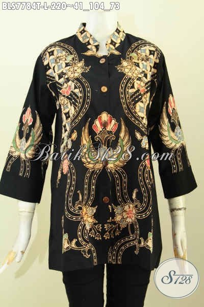 Batik Blus Elegan, Baju Batik Jawa Tengah Khas Solo Nan Berkelas Motif Keren Proses Tulis Dengan Model Kerah Shanghai, Wanita Terlihat Mempesona [BLS7784T-L]