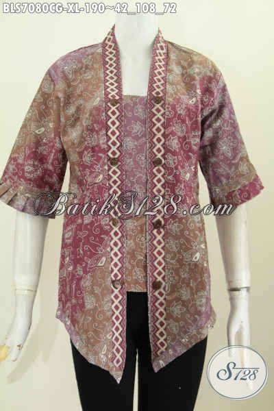 Batik Blus Elegan Dan Keren, Pakaian Batik Wanita Untuk Tampil Cantik Dan Seksi Warna Gradasi Proses Cap Model Kartini Atau Kutubaru Harga 190K [BLS7080CG-XL]