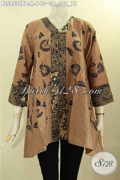Batik Blus ELegan Model Kartini Kancing Depan, Pakaian Batik Berkelas Untuk Acara Resmi Bahan Adem Motif Klasik Printing Cabut, Tampil Lebih Anggun [BLS8539PB-M]
