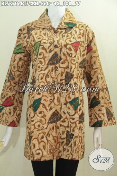 Batik Blus Elegan Model Terbaru Daleman Pake Furing Ukuran Jumbo, Baju Batik Jawa Istimewa Kwalitas Halus Kombinasi Tulis Cewek Gemuk Tampil Anggun Mempesona [BLS3706BTF-XXL]