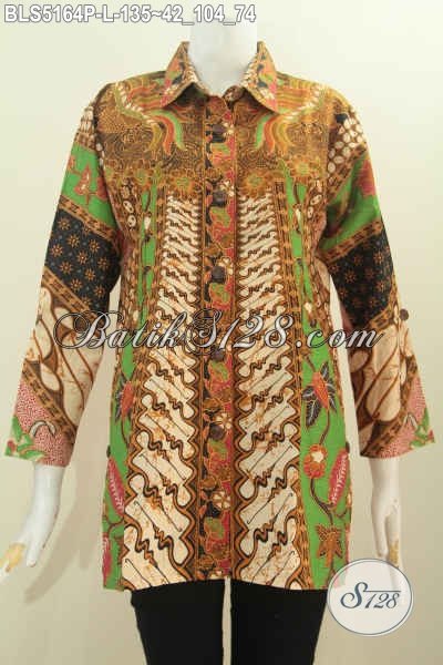 Batik Blus Elegan Motif Klasik, Pakaian Batik Kerah Kemeja Buatan Solo Spesial Buat Wanita Karir Yang Ingin Terlihat Modis Dan Berkelas, Berbahan Adem Proses Printing Harga 135K [BLS5164P-L]