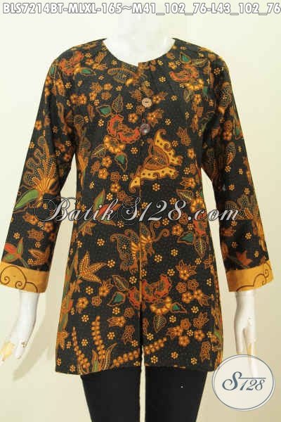 Batik Blus Elegan Motif Mewah Kombinasi Tulis, Pakaian Batik Istmewa Bikin Wanita Tampil Modis Dan Mempesona Harga 170K, Desain Tanpa Krah Pakai Ofneisel [BLS7214BT-M , L , XL]
