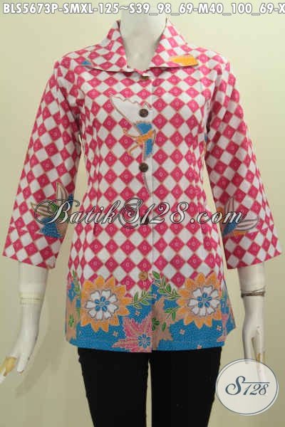 Batik Blus Formal Kerah Kotak, Produk Baju Batik Kwalitas Bagus Proses Printing Motif Trendy, Bikin Wanita Terlihat Lebih Feminim [BLS5673P-S , M]