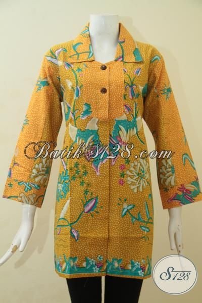 Batik Blus Formal Warna Kuning Motif Bunga, Baju Batik Remaja Putri Dan Wanita Muda Proses Print Harga 100 Ribuan [BLS3470P-S]
