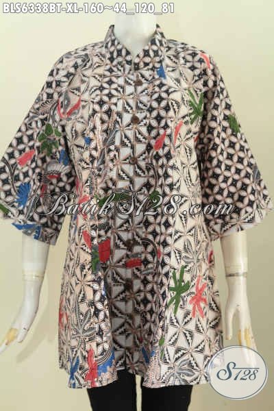 Batik Blus Halus, Pakaian Batik Elegan, Busana Batik Jawa Tengah Model Kerah Shanghai Motif Terkini Proses Kombinasi Tulis Hanya 160 Ribu [BLS6338BT-XL]
