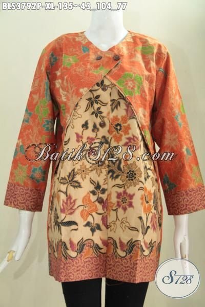 Batik Blus Istimewa Buatan Solo Buat Wanita Dewasa Tampil Lebih Modis Dan Mempesona, Baju Batik Masa Kini Proses Printing Motif Bagus Kombinasi Dua Warna [BLS3792P-XL]