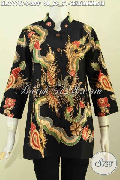 Batik Blus Istimewa Buatan Solo, Hadir Dengan Motif Cendrawasih Proses Tulis Model Kerah Shanghai, Tampil Cantik Dan Anggun [BLS7773T-S]