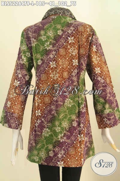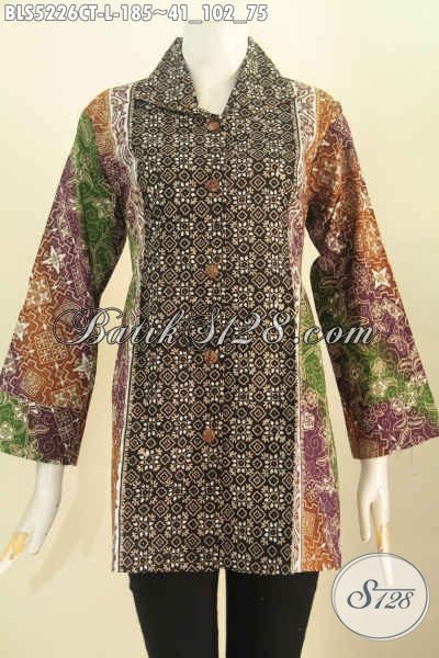 Batik Blus Istimewa Buatan Solo, Pakaian Batik Kerja Motif Kombiansi Model Kerah Kotak Proses Cap Tulis Hanya 185K [BLS5226CT-L]