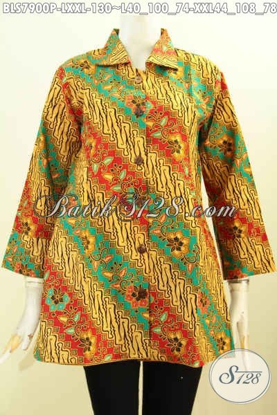 Batik Blus Istimewa Harga Biasa Baju Batik Krah Motif Klasik Printing Buatan Solo Yang Bikin Penampilan Cantik Dan Anggun [BLS7900P-L , XXL]