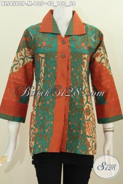 Batik Blus Kerah Kotak Dengan Desain Mewah Berkelas, Busana Batik Masa Kini Untuk Wanita Muda Tampil Beda, Berbahan Batik Print Motif Sinaran Klasik [BLS4560P-M]