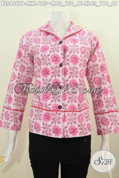 Batik Blus Kerah Langsung Model Yang Banyak Di Cari, Seragam Batik Desain Fashion Yang Mewah Berbahan Halus Proses Printing Dengan Warna Pink cewek Banget BLS4447P-M , XL]