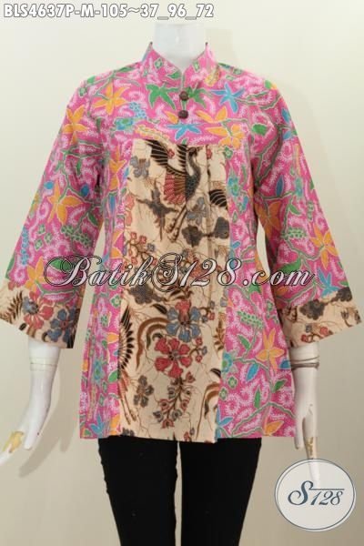 Batik Blus Kerah Shanghai Dengan Desain Terbaik Dan Berkelas Di Lengkapi Kancing Atas, Baju Batik Modern Berbahan Adem Motif Trendy Proses Printing Harga 100 Ribuan [BLS4637P-M]