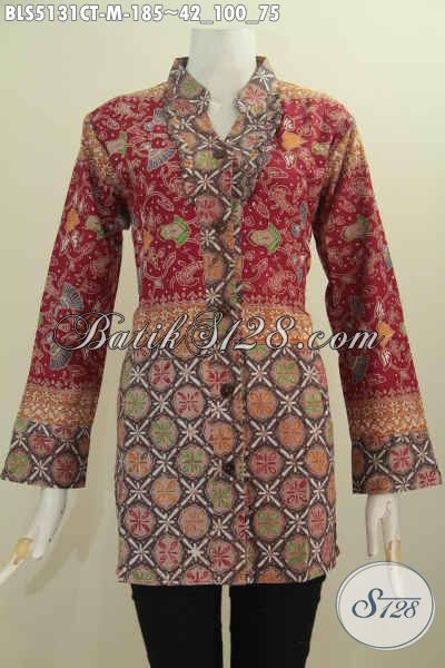Batik Blus Kerah Shanghai Kancing Depan, Baju Batik Wanita Lengan Panjang Yang Istimewa Untuk Kerja Dan Acara Formal Motif Bagus Proses Cap Tulis Trend Mode Masa Kini [BLS5131CT-M]