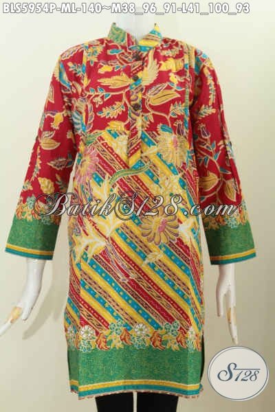 Batik Blus Keren, Baju Batik Istimewa, Busana Batik Berkelas Untuk Penampilan Lebih Gaya Model Kerah Shanghai Lengan Panjang, Pas Buat Ke Kantor [BLS5954P-M , L]