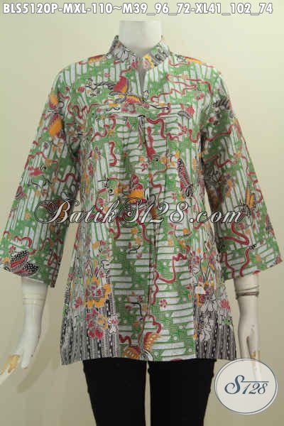 Batik Blus Keren Dan Modis, Baju Batik Wanita Muda Dan Dewasa Model Kerah Shanghai Berbahan Adem Kwalitas Istimewa Tidak Pakai Kancing, Modis Untuk Kerja Kantoran [BLS5120P-M , XL]