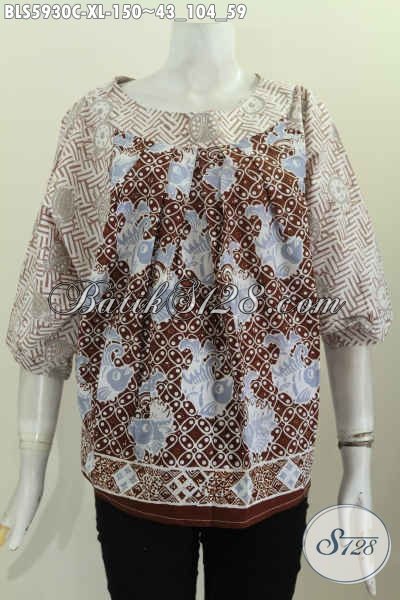 Batik Blus Keren Model Tanpa Kerah, Baju Batik Solo Motif Bagus Proses Cap Untuk Penampilan Lebih Istimewa [BLS5930C-XL]