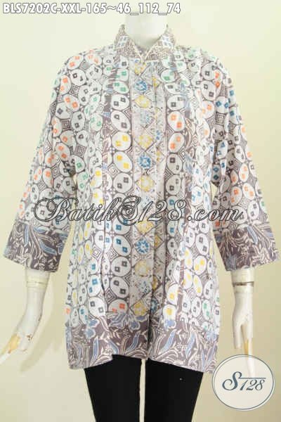 Batik Blus Kerja Buatan Solo Jawa Tengah, Pakaian Batik Wanita Gemuk Big Size Kwalitas Bagus Model Kerah Shanghai Plisir Hanya 165 Ribu [BLS7202C-XXL]