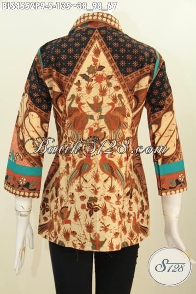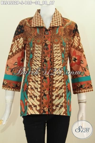 Batik Blus Klasik Desain Formal Kerah Kotak Motif Sinaran, Pakaian Batik Elegan Wanita Muda Untuk Seragam Kerja Tampil Berkelas Proses Printing [BLS4552P-S]