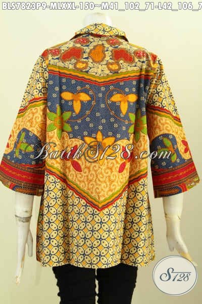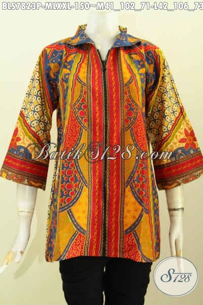 Batik Blus Klasik Istimewa Yang Bikin Wanita Karir Tampil Mempesona, Bahan Halus Motif Sinaran Model Resleting Depan Hanya 150K [BLS7823P-M , L , XXL]
