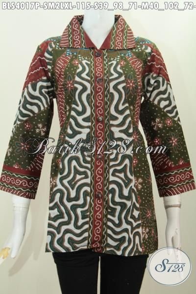 Batik Blus Klasik Motif Milo, Busana Batik Jawa Elegan Dan Berkelas, Pakaian Batik Formal Proses Printing Cocok Banget Untuk Kerja Cewek Kantoran [BLS4017P-S , M , L , XL]