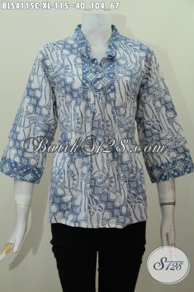 Batik Blus Klasik Warna Cerah Proses Cap, Pakaian Batik Model Terbaru Kerah Shanghai Bahan Halus Cocok Banget Buat Seragam Kerja [BLS4115C-XL]