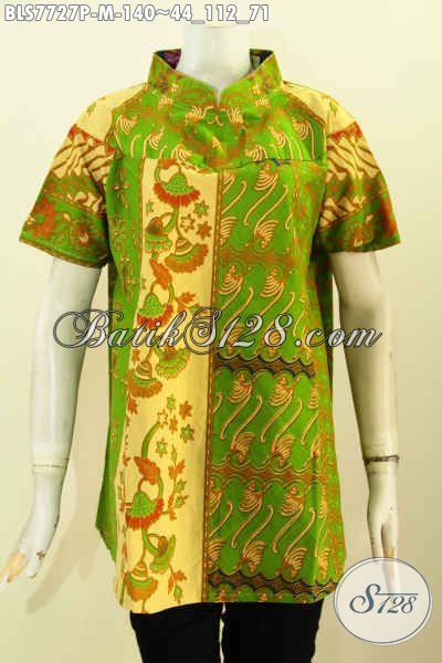 Batik Blus Klasik Warna Hijau, Baju Batik Printing Elegan Desain Keren Bahan Halus Kwalitas Istimewa Hanya 100 Ribuan [BLS7727P-M]
