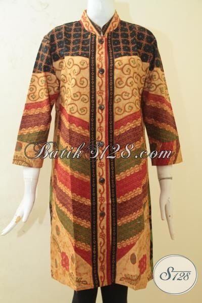 Batik Blus Masa Kini Model Kerah Shanghai, Baju Batik Elegan Warna Klasik Proses Kombinasi Tulis, Cocok Sekali Untuk Ke Kantor Dan Acara Formal [BLS3415BTA-XL]