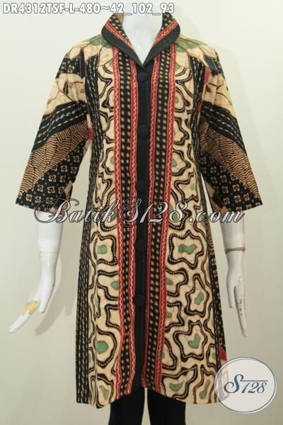 Batik Blus Mewah Buatan Solo Proses Tulis Pewarna Soga, Baju Batik Full Furing Desain Elegan Motif Klasik Tampil Makin Anggun [DR4312TSF-L]