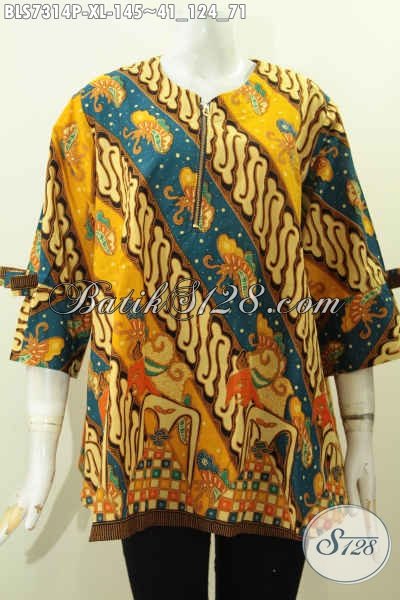 Batik Blus Mewah Elegan Motif Klasik Printing, Pakaian Batik A Simetris Solo Lengan Berpita, Tampil Mempesona [BLS7314P-XL]