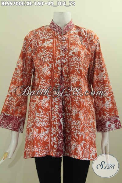 Batik Blus Model Pias Pake kancing Besar, Baju Batik Wanita Dewasa Motif Berkelas Proses Cap Buat Tampil Gaya Dan Mempesona [BLS5700C-XL]