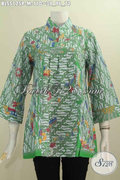 Batik Blus Modern Kerah Shanghai Tanpa Kancing Trend Mode 2016, Baju batik Istimewa Berbahan Halus Motif Elegan Proses Printing Tampil Lebih Anggun [BLS5125P-M]