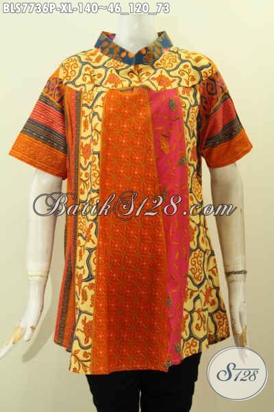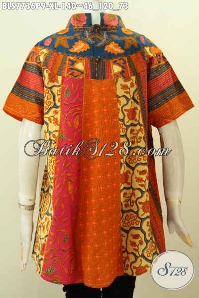 Batik Blus Modern, Produk Baju Batik Jawa Terkini Untuk Tampil Cantik Dan Gaya, Berbahan Adem Yang Nyaman Dan Modis [BLS7736P-XL]