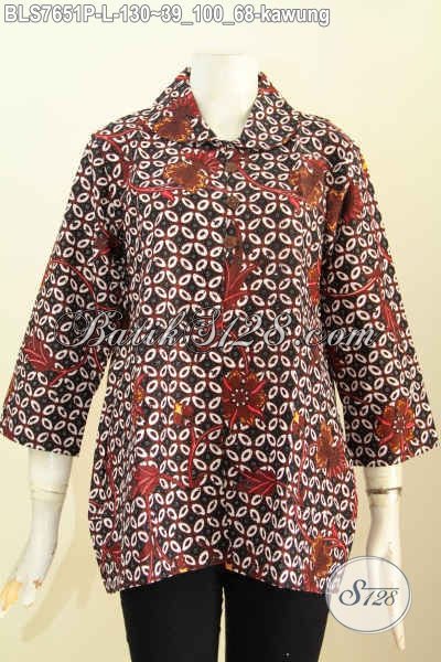Batik Blus Motif Kawung, Pakaian Batik Jawa Etnik Model Kerah Bulat Dengan Kancing Depan Trend 2019 Hanya 100 Ribuan [BLS7651P-L]