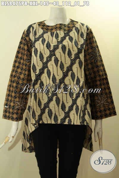 Batik Blus Motif Kombinasi, Busana Batik Wanita Gemuk Model Lengan Tumpuk Kancing Belakang Desain Depan Lebih Pendek Dari Belakang, Tampil Modis Dan Elegan [BLS8475PB-XXL]