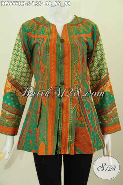 Batik Blus Motif Mewah Model Lengan Panjang, Pakaian Batik Tanpa Kerah Kwalitas Istimewa Proses Printing Tampil Bergaya [BLS6550P-S]