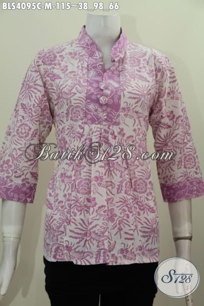 Batik Blus Paling Baru Buatan Solo Model Kerah Shanghai, Busana Batik Perempuan Karir Berbahan Adem Motif Trendy Proses Cap Menjaga Penampilan Tetap Cantik Berseri [BLS4095C-M]