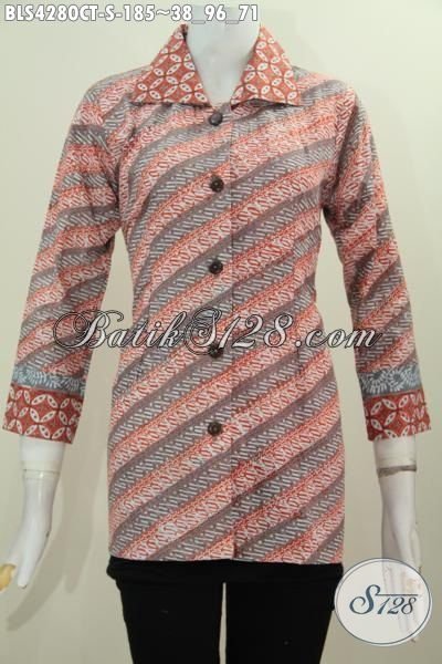 Batik Blus Parang Istimewa Size S Untuk Wanita Muda, Baju Batik Cap Tulis Model Kerah Kotak Elegan Untuk Seragam Kerja Kantoran [BLS4280CT-S]