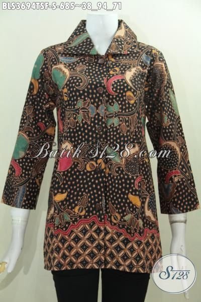 Batik Blus Premium Buatan Solo Untuk Wanita Muda Karir Sukses, Busana Batik Elegan Proses Tulis Kwalitas Mewah Daleman Pake Furing Tampil Makin Berkelas [BLS3694TSF-S]