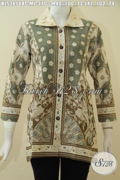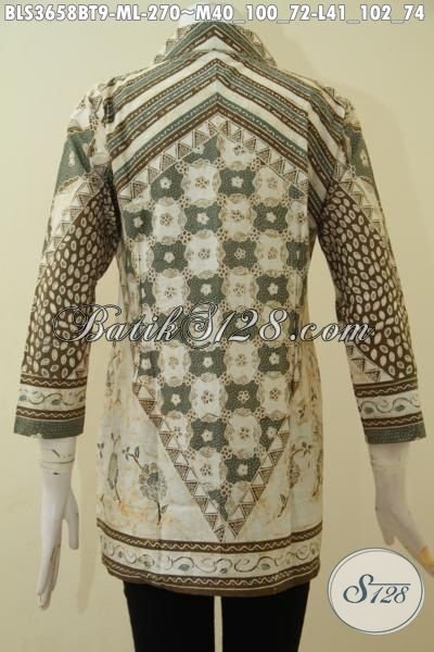 Batik Blus Premium Motif Klasik Warna Pastel, Busana Batik Jawa Masa Kini Proses Kombinasi Tulis Pas Banget Buat Seragam Kerja Kantoran [BLS3658BT-M , L]