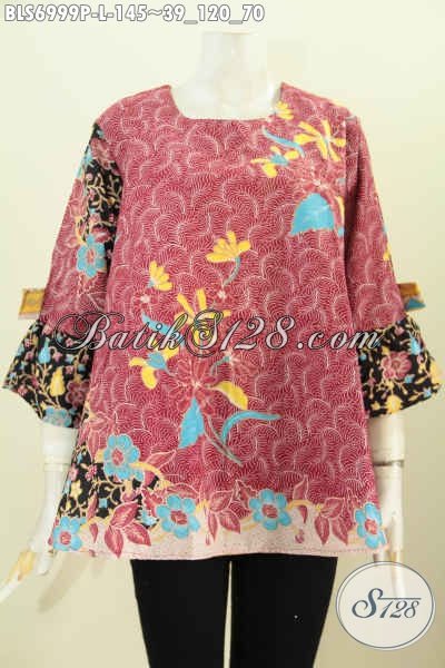 Batik Blus Printing A Simetris Lengan Pita, Baju Batik Kwalitas Bagus Hanya 145K [BLS6999P-L]