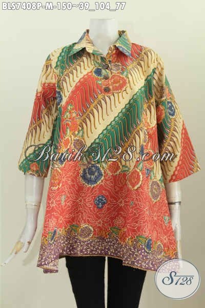Batik Blus Printing Elegan Motif Bagus Harga 150K, Pakaian Batik Kancing Depan Kerah Lancip, Tampil Modis Dan Cantik [BLS7408P-M]
