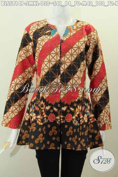 Batik Blus Rempel Bawah, Busana Batik Keren Tanpa Kerah Motif Mewah Buatan Solo Proses Printing Harga 100 Ribuan [BLS5814P-S , M , XL]