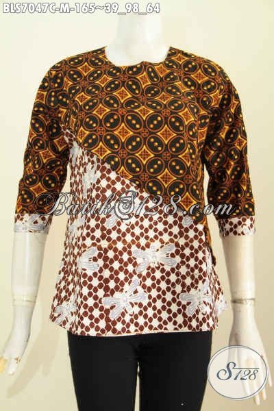 Batik Blus Solo Istimewa Dengan Kombinasi 2 Warna, Baju Blus Model Silang Untuk Penampilan Lebih Trendy Dan Berkelas Proses Cap Hanya 100 Ribuan [BLS7047C-M]
