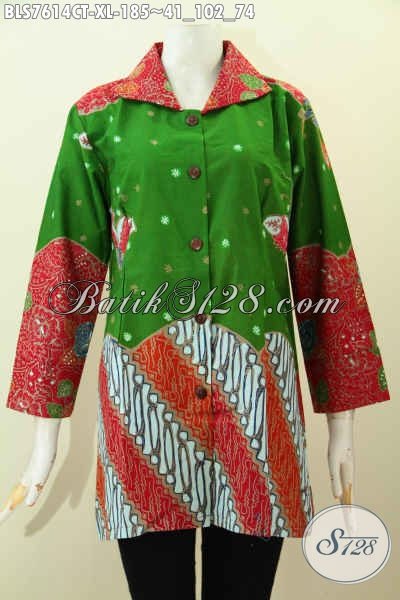 Batik Blus Solo Jawa Tengah, Pakaian Batik Keren Terkini, Pakaian Batik Wanita Dewasa Motif Kombinasi Proses Cap Tulis, Penampilan Lebih Mempesona [BLS7614CT-XL]