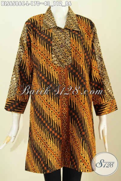 Batik Blus Solo Kerah Lancip 2 Motif Warna Soga, Busana Batik Istimewa Kerah Lancip Bikin Penampilan Lebih Menawan [BLS6586C-L]